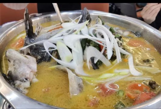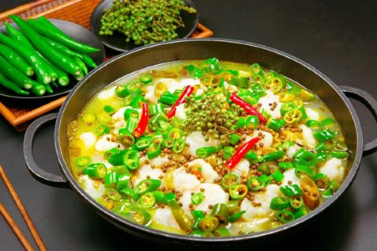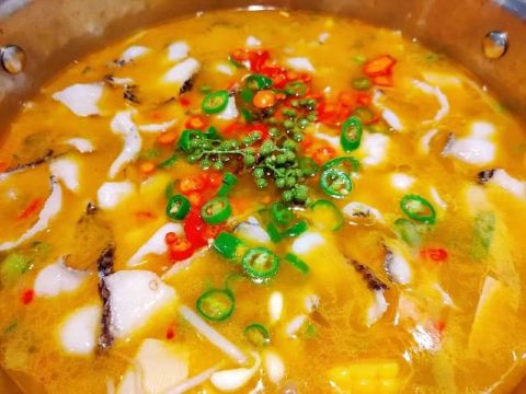 YoYo_9I6L0D5E吃土菜一定要找这种装修谈不上豪华的土菜馆,俗话说下饭馆就要下老店,住酒店就住新店,可以说全国到处到处都是味道好的餐厅,一般都不会太注重装修,更注重口味。 炸酥肉很香,盐味刚刚好,酥肉香脆。土豆片薄到半透明,下锅一分钟就能吃,但别吃太多,鱼才是经典。 主菜点了青椒江团鱼🐟,不同于凯里酸汤鱼那种明显酸味,而是用少量辣椒🌶️和大量青花椒吊出麻辣鲜香🍾,较之四川的花椒多了股清香,如此能在并没有很辣的前提下最大程度掩盖了江团最大的缺点—土腥味,配上江团肉质鲜嫩的口感,味道无敌了👏🏻👏🏻。第一条十多分钟就抢完,根本不够吃,又上了条黑鱼,泥土味少肉更香,但鲜味稍逊,肉质也老一些,煮时间长肉会散,更喜欢江团YYDS. 招牌菜果然不同凡响。 🍃服务:服务很随和,老板特别好说话,而且老板还是布依族人,热情好客又很喜欢瞌唠,一边吃饭一边聊他们的人土风情特别开心😁,这是一个愉快的用餐。