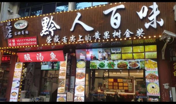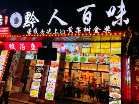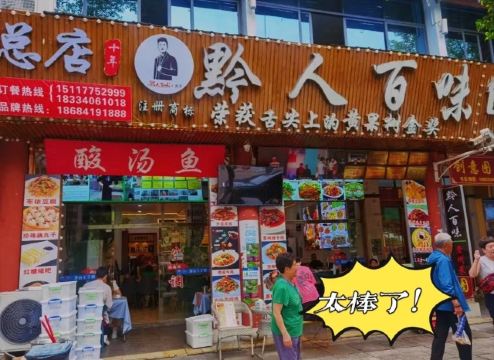 看到店铺里有些荣获🏆舌尖上的黄果树美食金奖推荐,就来试试。 因为不是饭点儿所以店里没有人,来贵州还没有吃过酸汤鱼,所以试了一下酸汤鱼。 酸汤和鱼非常搭,鱼很新鲜,即使鱼刺稍多,也不妨碍好味。还有那个鸡汤参鱼片也不错,因为爸妈肠胃不好,额外点了个清淡的,没想到吃完很暖胃,特别舒服,老人家胃口叼说这个菜很合适他们。 👍一家五口人吃得很尽兴,点的蕨粑炒腊味也不错,还有爆炒鸡胗,很巴适。整体是非常满意的。 🍥紫糕非常推荐,淡淡的甜味。 💕服务态度特别好,还会主动告诉有团购,这样省钱又能尝到美食哈哈,老板是少数民族布依族的人,性格特别活泼好谈,来黄果树不知道吃啥就来他家,不会踩雷的,很多推荐菜放心点。