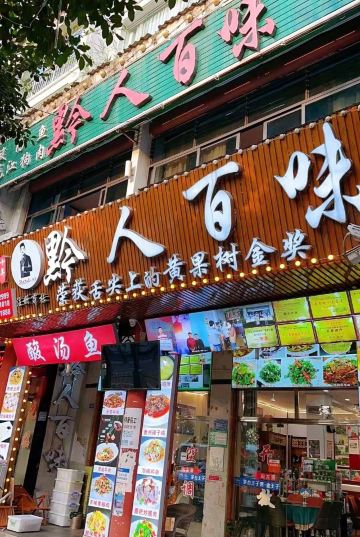 动物园在逃热狗🕺🏻贵州这一带最有特色的是酸汤鱼,各种少数民族的风味。来这边玩了三天,吃腻了酸汤鱼,看到这家的青椒鱼很诱人,换个口味试试! 青椒鱼很好吃! 会贴心地问我们的口味能不能吃辣之类的。本地江团鱼🐟很大一条且非常鲜嫩,鱼是自己去后厨选看着杀的,店里的沾料配上糊辣椒蒜泥,不辣但是巨香无比,这应该是老板自己调的,我在其他店都吃不到。 👨🏻🍳老板非常热情好客,我们第二天说想吃五彩饭但怕吃不完,老板听见了还主动帮我们把套餐里的米糕换成五彩饭! 每次来都邀请我们试吃刺梨冻和波波糖🍬波波糖非常香(喜欢花生芝麻的不能错过) 🌿真的很推荐这家餐厅,来黄果树瀑布值得来尝尝。