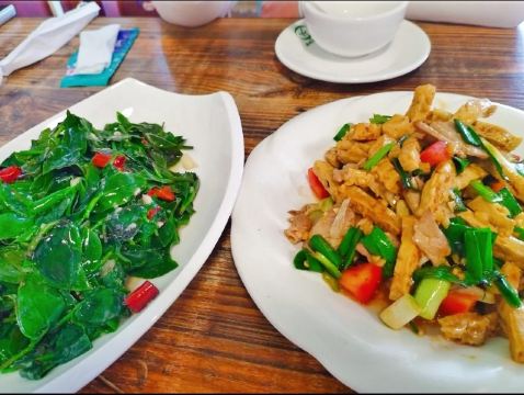 桃桃桃桃桃桃🍑【口味】口味如果有八颗星⭐,从黄果树🌲瀑布出来已经饥肠辘辘了,[囧]跟着点评选择这家。虽然点评看起来良莠不齐,[皱眉]但我们消费后的感受还是很好的。[强]笋炒腊肉🥩龙须菜炒腊肉[嘴唇]带皮牛🐮肉非常下米饭[饭][饭][饭]。这个价格在景区来说是合理的。💰口味更是赞爆。腊肉龙须菜🍱的滋味就征服了我家所有人,清爽有滋味,两味原材料的配搭🍣实在让人赞👍🏻叹。真想留下来再吃一份。 其他的菜🥗也各有千秋,店家点菜的勤劳姑娘拦着说我们吃不了,[好的][好的]不让再点,她低估了了我们的实力还有他们家菜的美味。[吃瓜][吃瓜][吃瓜] 吃的时候忘记拍照📸,快吃完才想起来。🏟️最后几乎光盘,黄果树瀑布🛣️的壮美,都让人流连忘返。喜欢贵州,还会再来[嘿哈]