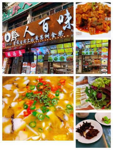 小美爱美食33看到店铺里有些荣获🏆舌尖上的黄果树美食金奖推荐,就来试试。 因为不是饭点儿所以店里没有人,来贵州还没有吃过酸汤鱼,所以试了一下酸汤鱼。 酸汤和鱼非常搭,鱼很新鲜,即使鱼刺稍多,也不妨碍好味。还有那个鸡汤参鱼片也不错,因为爸妈肠胃不好,额外点了个清淡的,没想到吃完很暖胃,特别舒服,老人家胃口叼说这个菜很合适他们。 👍一家五口人吃得很尽兴,点的蕨粑炒腊味也不错,还有爆炒鸡胗,很巴适。整体是非常满意的。 🍥紫糕非常推荐,淡淡的甜味。 💕服务态度特别好,还会主动告诉有团购,这样省钱又能尝到美食哈哈,老板是少数民族布依族的人,性格特别活泼好谈,来黄果树不知道吃啥就来他家,不会踩雷的,很多推荐菜放心点。