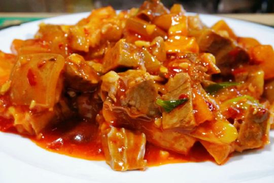 自渡YY从四川省[害羞]过来旅游打卡咯[转圈] 🏕️住在景区里出来非常不方便,但还是费劲出来🏡打卡 ,事实证明[吃瓜]这个选择没有错[胜利][胜利][胜利] 因为吃过了布依酸汤鱼🐟,所以点了一个🫑青椒鱼,味道真的很棒,鱼肉🥩🥩🥩又嫩又入味!老板看我们远道而来还给我们近两份量的鱼🐟肉,直接吃鱼🐟肉吃撑带皮牛🐮肉🥩非常特别,皮很有嚼劲又软糯,很好吃![吃瓜][吃瓜][吃瓜] 老板还给我们试吃了自产的干辣椒🌶️,也买了几罐回家 吃完之后,老板人非常好又健谈!🍺🍺🍺给旅游增加了美好的回忆,下次有机会再来! 店铺:黔人百味 位置:黄果树客运站·迎宾大道109[烟花]