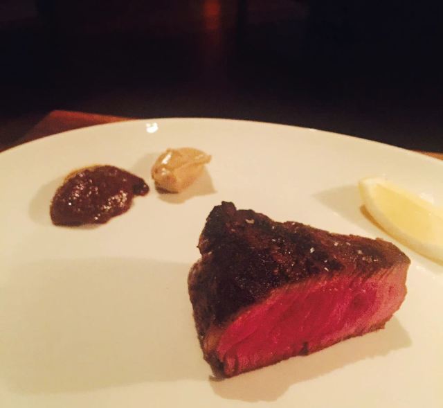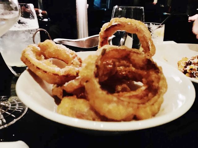 XY_ShirleyRockpool Bar & Grill 住在悉尼丽笙酒店, 离Rockpool Bar & Grill只有一百米。 这家两个帽子的西餐厅, 而且在悉尼牛排排行榜上居前, 爱牛排的我怎么能错过? 带着我家小公主没有提前预定直接过去碰运气, 因为没有预定所以没有餐厅大堂的位置, 给安排了我们酒吧的位置。 酒吧里有整面玻璃杯做成的墙, 在忽明忽暗灯光下璀璨夺目, 本来想点肋眼牛排 结果都是350克, 所以点了36个月菲力草饲牛排, 5分熟刚刚好, 外焦里嫩, 还带着血水, 入口很鲜嫩, 内心的声音是要是再来块肥瘦相间有嚼劲的肋眼就更棒了, 肉酱通心粉 不吃牛排的小公主选择了通心粉, 他家通心粉和外面的不一样, 很Q有弹性小公举很喜欢, 洋葱圈外壳松脆, 洋葱也超好吃。 点了一杯不知名的鸡尾酒, 口感很棒, 关键餐厅的价格一点不贵, 59澳元的菲力真的很亲民, 国内这个价格根本吃不到这样品质的牛排, 老外服务也很热情, 强烈推荐。