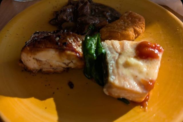 清蒸螃蟹,鲜虾,黑蒜烤生蚝,烤小羊排,填馅鸡肉配青豆炒蘑菇,牡蛎,袋鼠肉,澳洲牛排