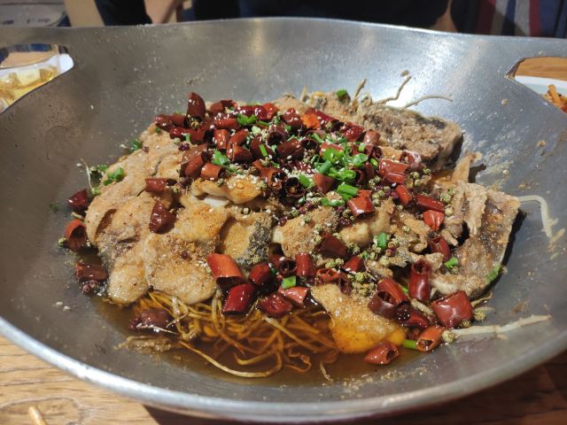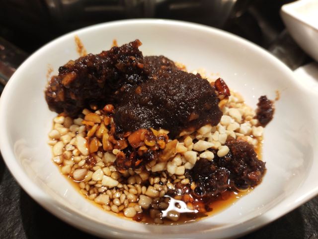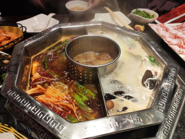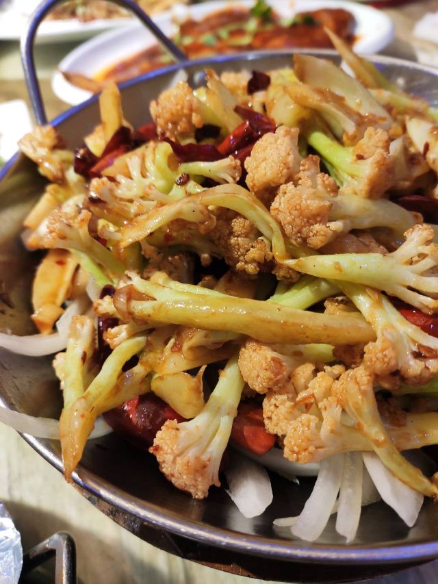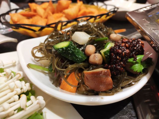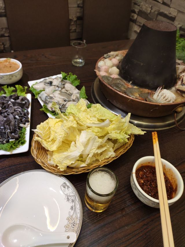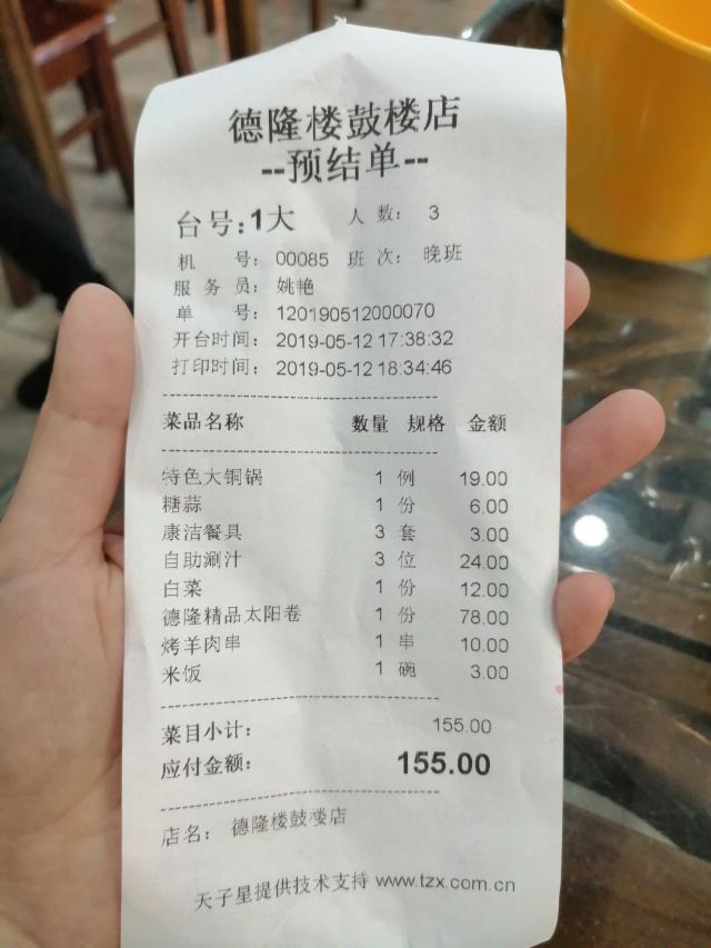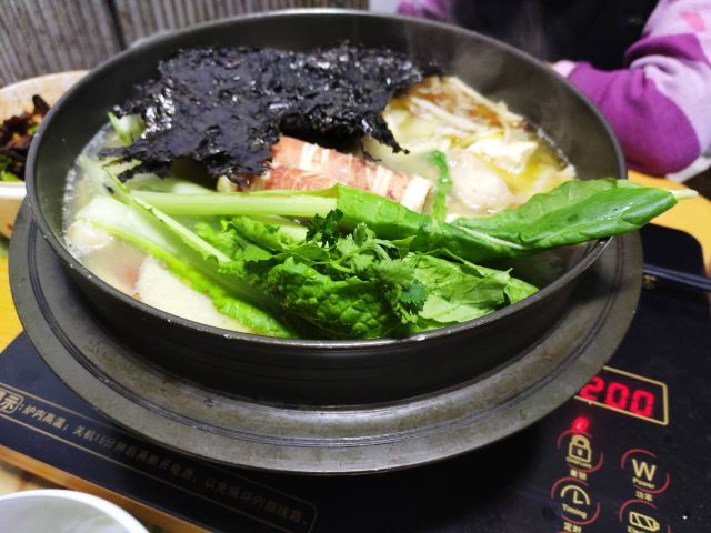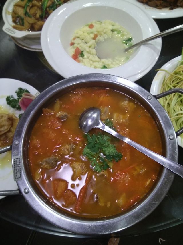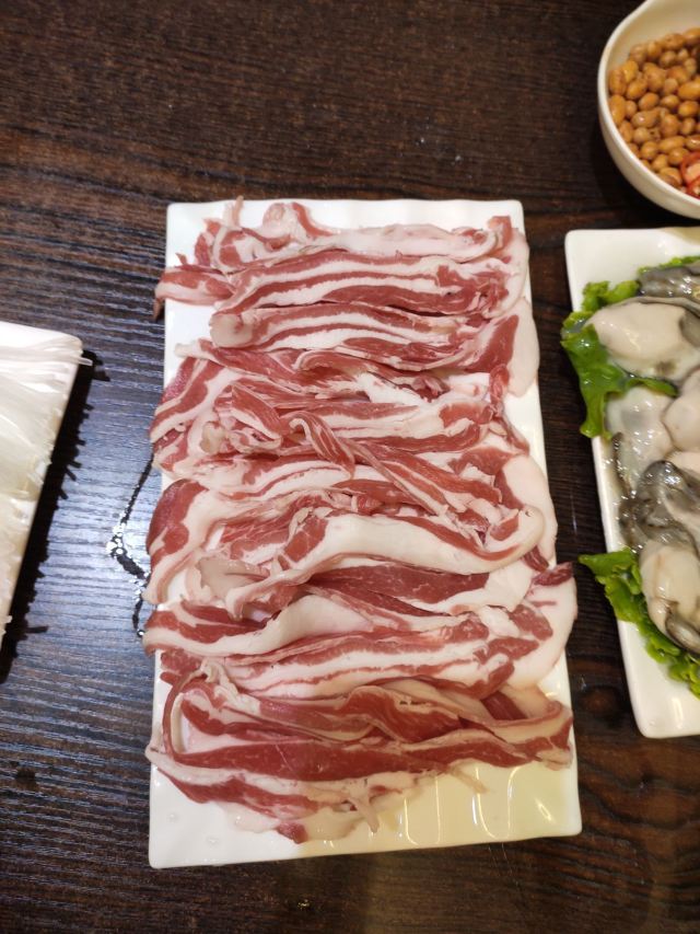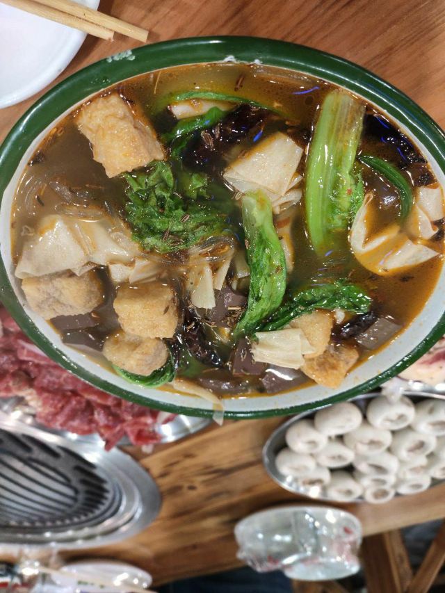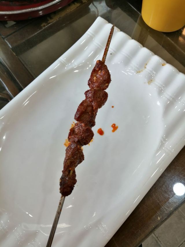 YoYo_7W4Y4Z0U看了很多介绍都推荐这家店,从一开始就列在了行程单。接机的司机告诉我们这家店很贵,建议我们不要去,还是固执的去了。两大一小点了大家推荐的太阳肉78元,白菜和一根烤串。太阳肉下锅就熟,基本没膻味,可能是不习惯酱料,始终觉得不太好吃。烤串点了一串试味道,店家给我们描述的又大又好,结果味道还行,烤串真心小,我们当地就是十元四串那种,这里一根10元。白菜12元煮来好吃。米饭一碗3元,酱料蘸水8元。真心小贵。 更值得一说的是:点菜时店家告诉我只需要点我要的菜就行,后来上桌多了一份糖蒜,我还以为是送的。结账的时候店家才说那个是必须搭配的。