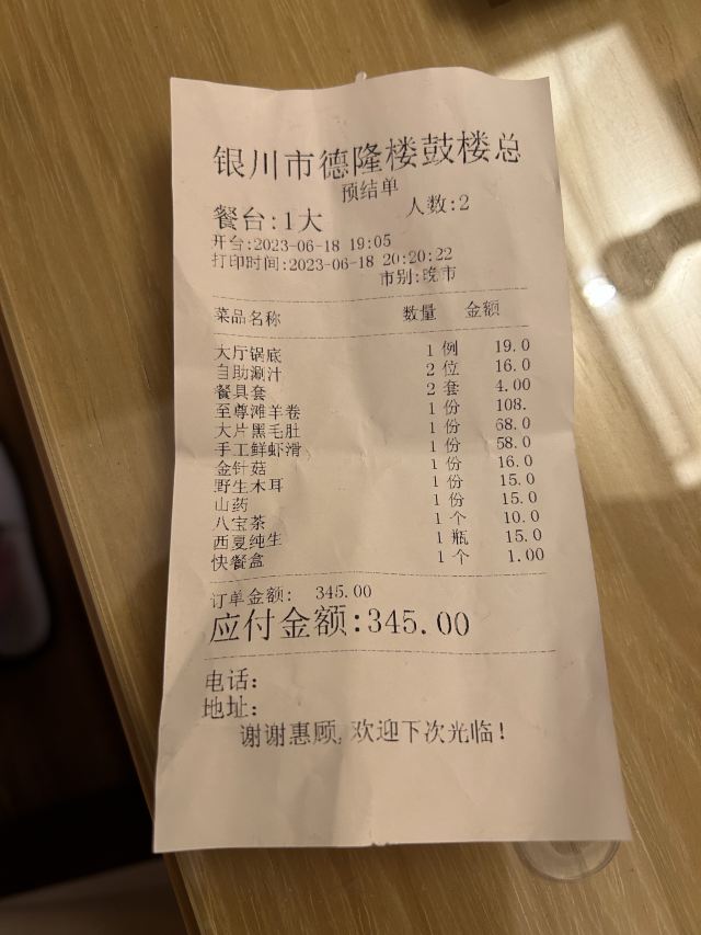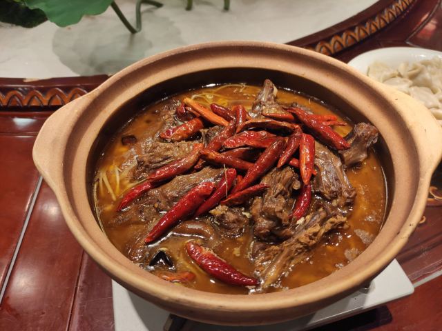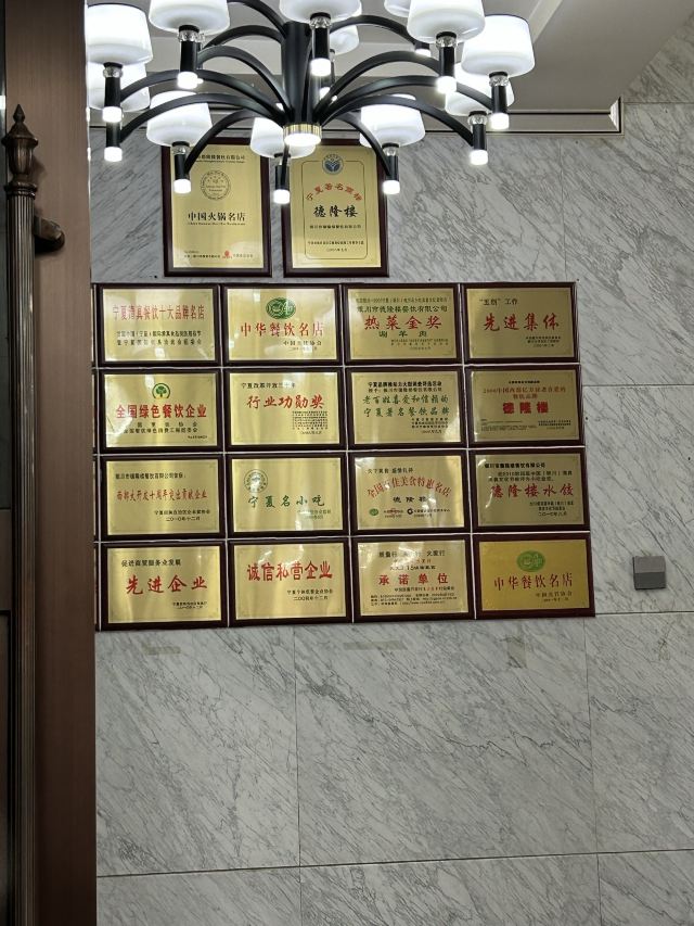 DeLong Lou (YinChuan Long Hu BinGuan)就在银川鼓楼边上 门脸不大 生意兴隆 主打羊肉 宁夏的滩羊卷 不膻不油 真的好吃 份量🦶啊 北方饭店的菜量比起南方多的多 所以本人菜点多了 估计人均100元 足够吃 门店服务好 连保安大叔都主动待客 好评了