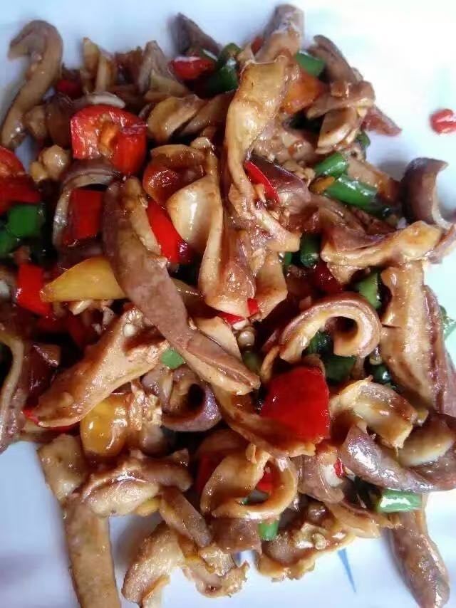 牛肉,茄子烧豆角,猪血汤,黄焖鸭,鸭胗炒酸芋荷,猪肚焖磨菇