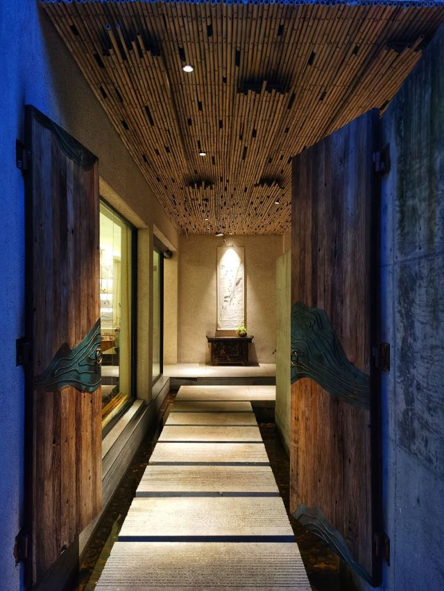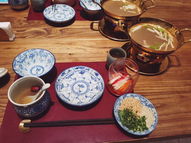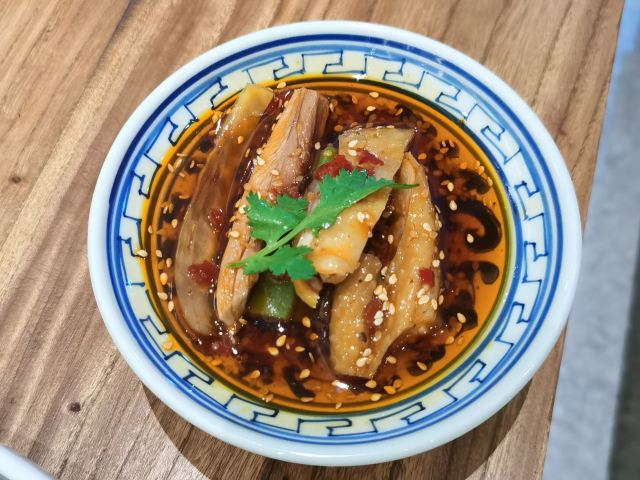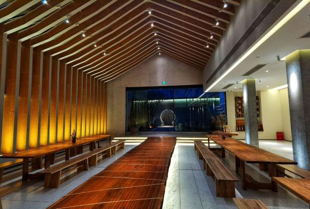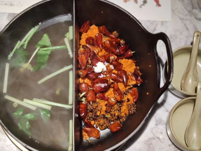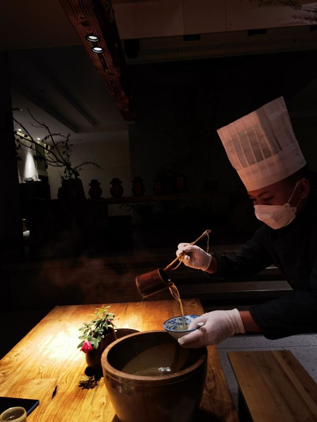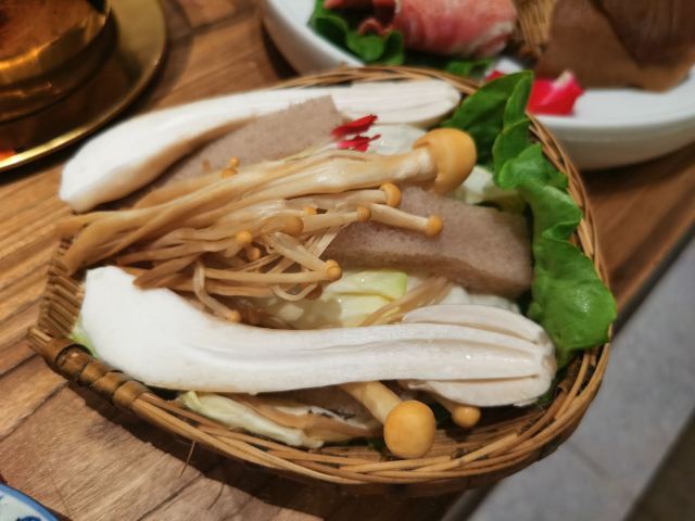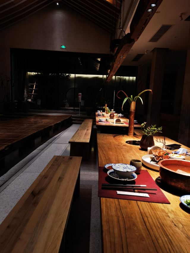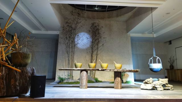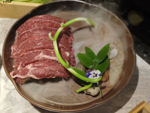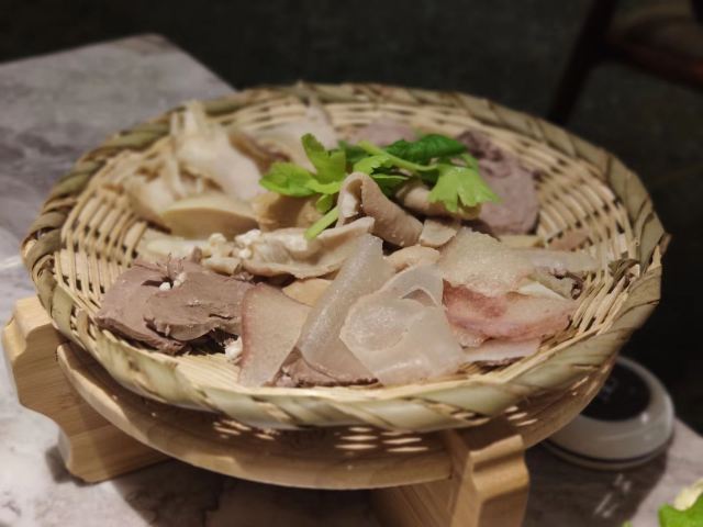 说策道策[火锅]尽膳峨眉非遗博物馆,峨眉山脚下的一条老街上,周围都是老房子,就这里独树一帜,很有特点! [薄荷]环境: 尽膳在全国很多餐厅,只有这里是以博物馆形式呈现出来的,展示了翘脚牛肉的烹调器皿和历史文化。新中式的装修风格,搭配了很多川式特色的元素。大堂中有一条木质T台,很有感觉。 [服务铃]服务: 可能是当天放假期间,没有多少服务人员,上菜和客诉都比较慢。不过,看服务的标准还是不错,只是当天的服务确实不够到位。 [火锅]口味: 尽膳的口味比较清淡,喜欢麻辣的,可以配干碟,是比较传统的翘脚牛肉吃法。这里都是套餐形式,160多/位的餐标,除了翘脚牛肉的锅底和烫菜,另配有四川特色的热菜、凉菜、小吃。餐品营养、味道又不错! 整体感觉还是不错,虽然那天还有点小遗憾,不过味道还是很不错,回重庆后,尽膳口福成了工作餐备选之一。