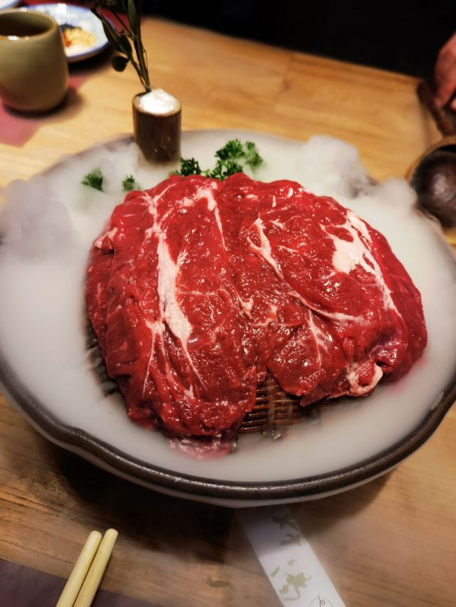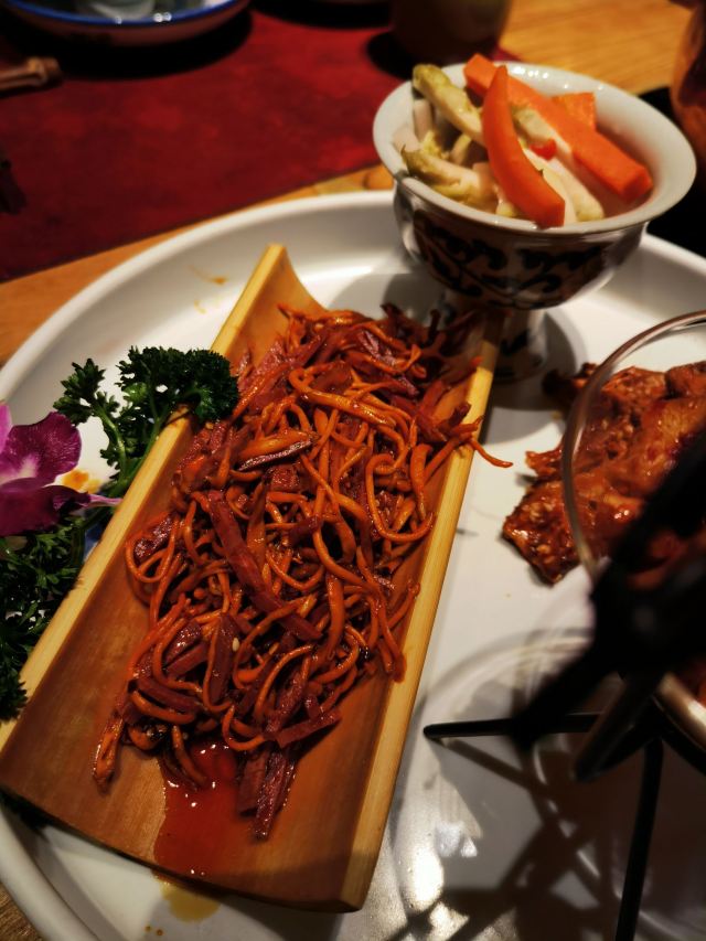 Jin shan e mei fei yi bo wu guan · gu fa chuan cheng mei shi峨眉山乐山之旅的第一顿。仪式感满满,适合不赶时间乐意慢慢享受的游客。九秒牛肉真的是好吃。牛肉拼盘里的就一般般了。牛肉丸味道还可以,肉含量挺高。蔬菜拼盘还要有一些不认识的当地菜。 干碟还是有些不习惯。 空间太开敞了,冬天来吃真冷啊,不过吃起来就不冷了。 一圈玩下来之后才知道,这家之后在峨眉山乐山这边就再也找不到环境这么好的饭店了。
