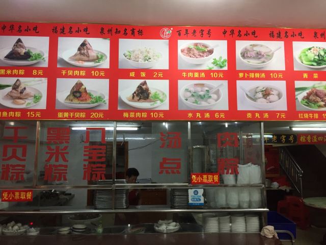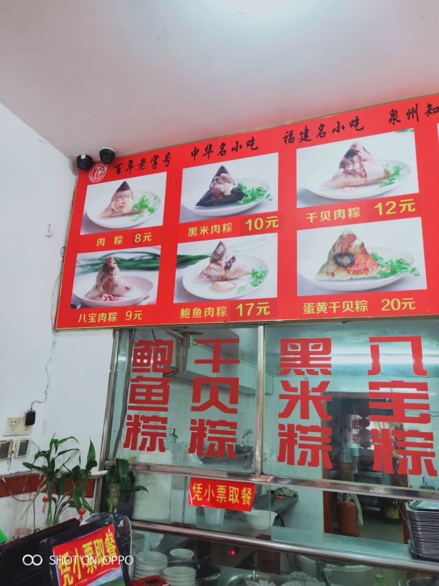 大失所望。点了两个招牌肉粽,我先说产品品质,粽子本身包得不紧实,所以吃的时候松松垮垮,这种粽子放我们这里就算根本不合格,居然还有各大平台的宣传,号称泉州老字号,简直是个大笑话。然后粽子巨咸,难以下咽。鲍鱼腥味很大,明显用料不用心,差评! 再说服务,哎哟,第一次体验这么差的店,路边的苍蝇馆子真把自己当什么了?食客吃饭,问店家有没有水喝,居然回答没有,我惊呆了。 一个鲍鱼粽子22元,一个什么贝粽子13元,一起35元,这种产品和服务,怎么好意思标价的?我真的建议不如去旁边肯德基。