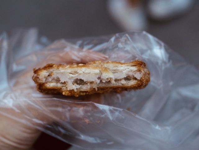 本来是来找壶见的,然后搜了下附近有没有什么美食就发现了这家。 每天4点半到5点之间开门,每日卖完就关店,也是非常的任性了。我们很幸运的买到了最后2个(还要谢谢前面小姐姐,没有包圆)。 芋头饼只剩甜的了,也很好吃,外皮酥脆,里面是软糯的芋头,很扎实的口感。