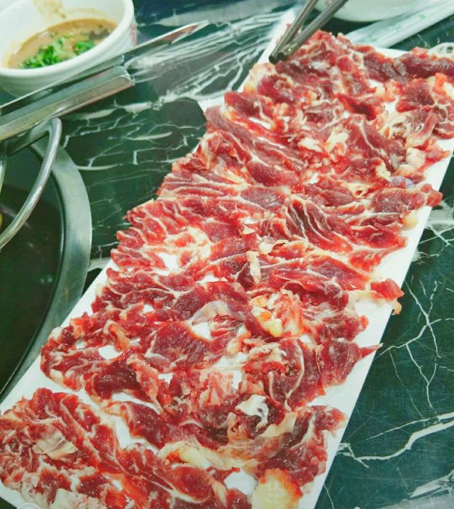 终于忍不住来打卡一下,每次经过都很多人,特别晚上。感觉价格不算高,味道也很好。点了小锅牛杂汤底,分量很足,够三个人吃。肥牛是普通的那种涮牛肉,一品雪花是现切的,烫几秒就能吃,非常好吃,菜都分量都挺多,如 果是团购午餐50抵一百的更划算,那样3个人吃估计也只要花100元,绝对吃撑。服务态度也好可以。