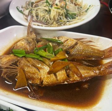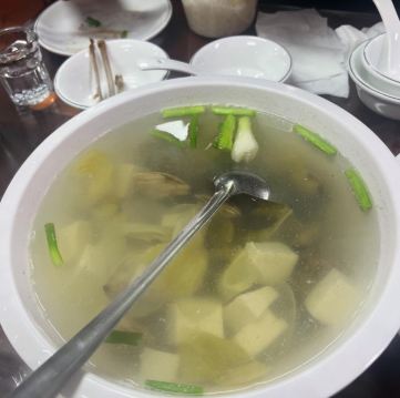 口味:阿山姜母鸭 很好吃,鸭子软烂,香气十足。糯米血糕 和鸭子放在一起,感觉应该是鸭血和糯米混合在一起。糯糯的,很香。炒地瓜叶 菜很新鲜。爆炒鱼肠 鱼肠脆脆,咸鲜。鸭血炒大肠 很好吃,鸭血很嫩,大肠q弹,咸鲜微辣。海蛎煎蛋 像一个蛋饼,里面有小个的海蛎,配着甜辣酱很香。笋干烧三层肉 干笋炒五花肉,三层肉也就是肥瘦相间,很下饭。炣烧必香鱼 可能是一种做法,有点像红烧。花蛤豆腐汤 花蛤和豆腐,很鲜,很淡,典型福建汤。油淋大管 油淋是福建这面的做法,用酱油油浇在食材上,很清淡,很鲜。 环境:还可以,就是需要排队 服务:一般