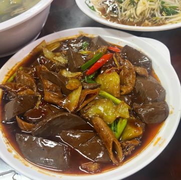 姜母鸭,糯米鸭血,招牌鸭胗鸭肠,牡蛎炒蛋,炒空心菜,苦瓜沙蚬汤,海蛎煎,牛肉羹