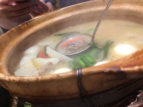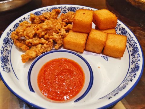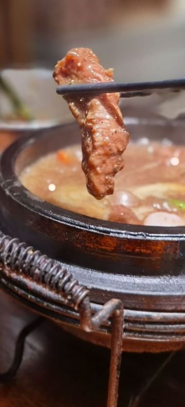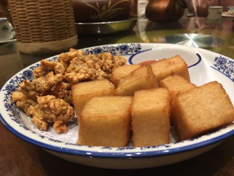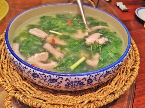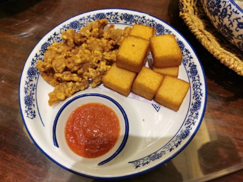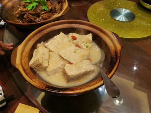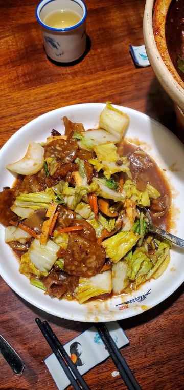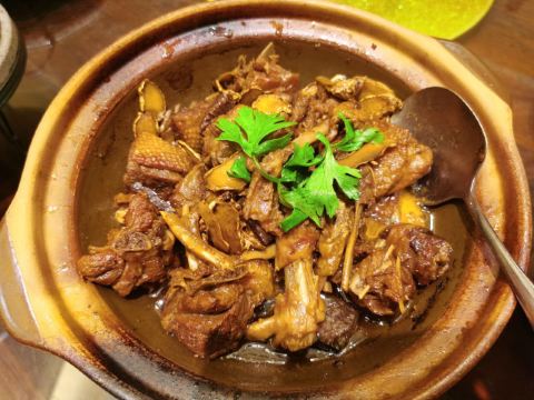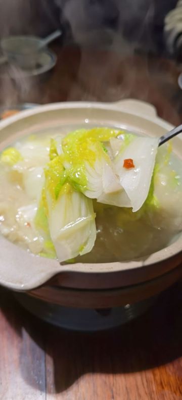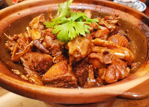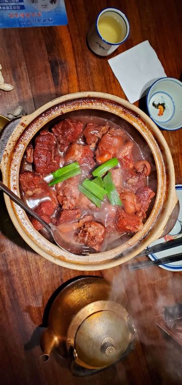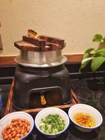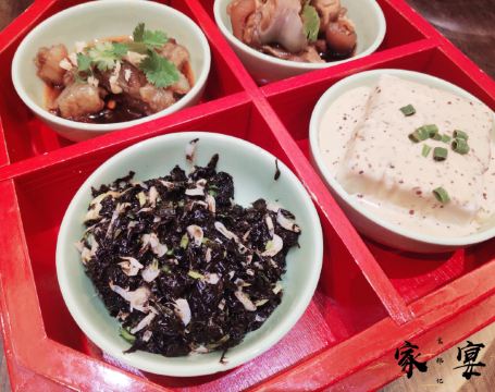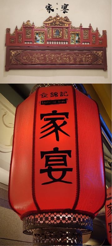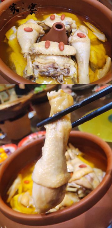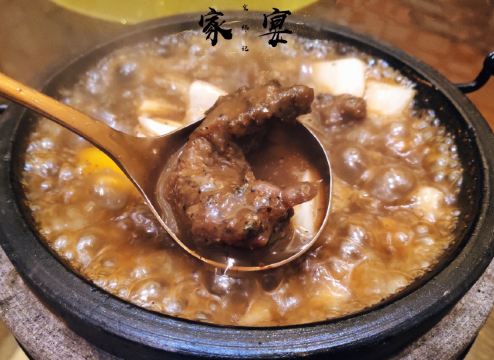 青梅煮酒Luna酱快过年啦,这家布置超有红红火火的氛围,一排排漂亮的火红灯笼随风摇曳,中国风的家宴二字仿佛迎风向我伸出了欢迎的小手[调皮] 店名叫做:【食锦记•家宴】,位置在开元盛世广场三楼,上电梯以后转悠半圈,多多注意大红灯笼就能找到哦。 晚上七点整,店内已经非常热闹,大厅的大小卡座、桌子坐了不少人,里面还有包厢,我来到了“春之声”,包厢可轻松容纳十人,略带复古又有质感的闽南家庭风格装饰沿袭了店内一贯的主题,处处点扣住“家宴”的“家”一字,连菜式也多是闽南人从小吃到大、喜闻乐见的家常菜。 「雨花石锅牛肉」 上桌一直咕噜噜沸腾着,一分钟以后逐渐飘出特别香浓的黑椒味,完全抢掉了开胃小菜的风头,导致我小菜还没吃就先把魔爪伸向了牛肉。滑、嫩、恰到好处的黑椒味,好吃哦[调皮] 「葱姜蒜焗水库大鱼头」 本人不爱葱蒜,但是这道菜还是称得上好吃。鱼肉质鲜嫩,和剁椒鱼头相比,最上面的小米椒其实只算得上是锦上添花的美化作用,鱼肉吃起来基本不辣,因此十分符合闽南口味,再次扣题,家宴正是要家的味道。摘除了辣的部分,保留了鲜、香、嫩的特质,用葱姜蒜很好地调和了淡水鱼的本味。 「老坛姜母鸭」 也是一道响当当的闽南家常菜,鸭肉紧实、入味,底下还有米雪糕,姜味非常适合冬日的味蕾。 「芹菜沙鱼羹」 看似清淡,喝起来惊喜。沙鱼的肉质比水库大鱼头的会紧实一点,芹菜的处理方式好像是裹了淀粉之类的,像有的肉片的处理方式,相当滑嫩。 「汽锅鸡」 这款卖相超拉风的汽锅鸡是本店第7613份!(如果我没听错的话)小哥会声情并茂地介绍一番,然后揭开汽锅上的封印,这只诱人的鸡就呈现在大家面前,鸡汤非常的香浓,肉质由于汤的做法是有一点点柴,所以这道菜的鸡汤特别受欢迎。而且闻到当归、党参、枸杞的味道就觉得特别养生。 「浓汤烫口老豆腐」 这道这道!我超喜欢的,这种越是简单的菜做得好吃才越厉害吧,过年期间大家一定会吃好多大鱼大肉的,到时候别忘了来一道老豆腐,清清口,豆制品的清香十分解腻。 「家宴萝卜饭」 这道开始放在旁边的小桌子上我就一直在觊觎了,用一个小锅下面火苗烧着,前面还摆着三个小碟子配菜,店员拌好后很贴心地给每人分盛一小碗,不爱吃米星人—我的一小碗都吃完了,米饭香糯,配菜添加了风味。 「四彩碟之海蛰头」 忙于吃肉的我没顾得上吃小菜,就尝了豆腐,这里面的豆腐冰冰凉凉很好吃。小菜碟和水果碟的碟子非常复古,别有韵味。