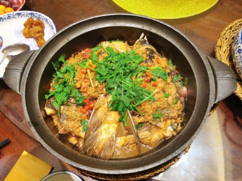 妈妈的味道,是每个人记忆里最深刻的味道。 食锦记·家宴,一个深耕多年的闽南私房菜老品牌,带你还原那最初的味道。 店铺位于泉州开元盛世广场里,海底捞隔壁。 「安海醋肉萝卜糕」 经典的闽南小吃,安海萝卜糕是闻名已久,外皮炸得酥脆,里头的萝卜泥软绵;精选上等猪肉炸的醋肉,味道更是不错。 「金牌汽锅鸡」 精选6个月的上等河田鸡,搭配党参枸杞,蒸足4个小时,鸡肉软嫩,汤头超级鲜甜味美,和在建水吃过的味道一模一样。 「雨花石锅牛肉」 滚烫的石锅牛肉一端上桌,就闻到了黑椒香味,上等的牛肉十分的入味,黑椒汁搭配米饭,更是一绝。 「葱姜蒜焗水库鱼头」 店铺新菜,先过油的葱姜蒜味道更加的香,腌制过的鱼头搭配葱姜蒜更是入味,鱼头份量十足。 「芹菜沙鱼羹」 芹菜?不说还真辨别出来。将芹菜裹粉去蒸熟,在搭配鲨鱼肉羹,味道鲜美无腥味,非常惊艳的一道汤。