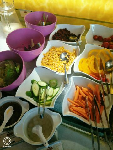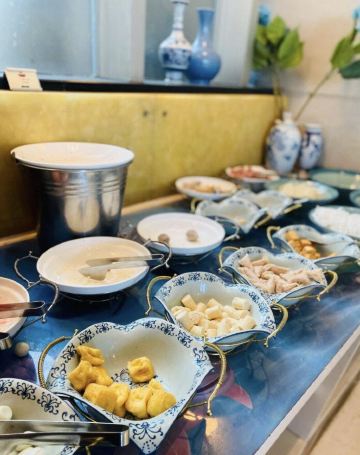 【环境】自助餐厅在酒店一楼,位置方便, 【服务】午餐有推出自助小火锅,火锅区域产品丰富。选择多, 【口味】食材新鲜,还有特别喜欢的牛肉卷,非常好吃。自助的热菜区,品种丰盛,热腾腾口感好,很好吃,是周边自助餐出品最丰富的餐厅,很棒。