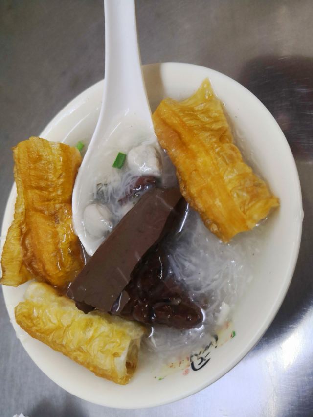 ma****ly水门国仔老店所在的水门巷子,生活气息很强的一条巷子,不长的街道两旁,摆出的摊位售卖着各种闽南特色的早餐,还有像鱼丸这类的特色美食,而水门国仔无疑是这条街上最热络的店。 老店的格局是中间点餐付款,选好大小碗的面线糊之后,再选加入的各种配料,我们是第一次来,对于要加什么料多少有些迷糊,还好前后排队的人都很热情,纷纷给我们推荐各种特色配料。 我点了小碗的面线糊,加入了海蛎,油条和猪红,朋友则加了猪腰猪肺猪红,一水的猪。 面线糊看起来是糊状的,但其实吃起来很清爽,味道也很鲜美,吃得时候就后悔点的是小碗了,也后悔来了泉州那么多天,之前之顾着吃酒店了,应该多来尝试一下不同的搭配。