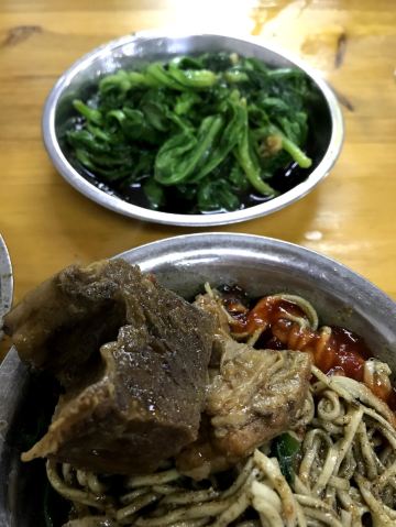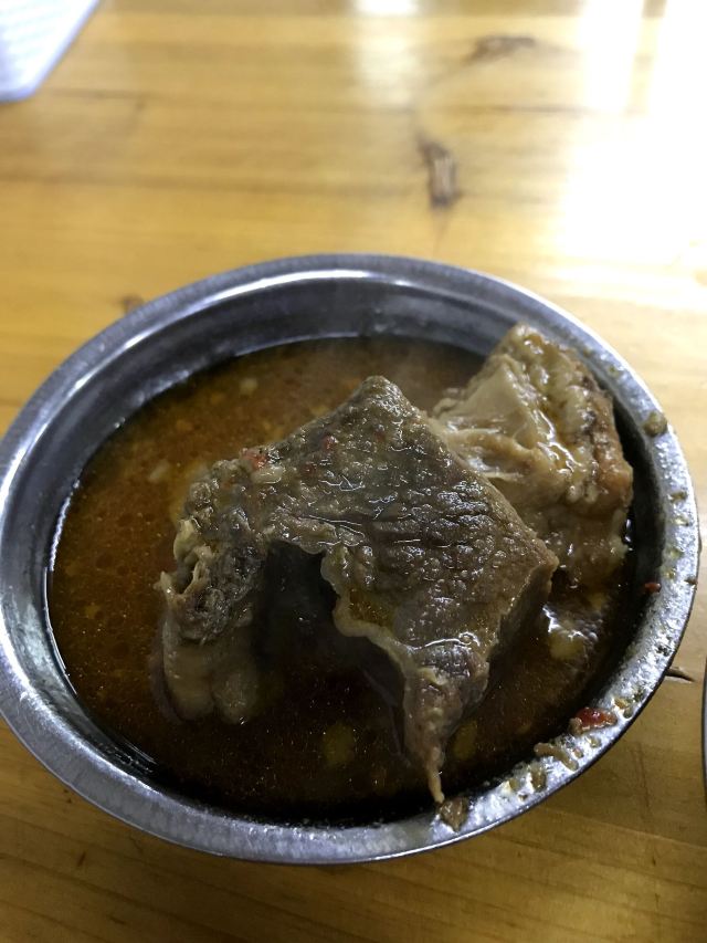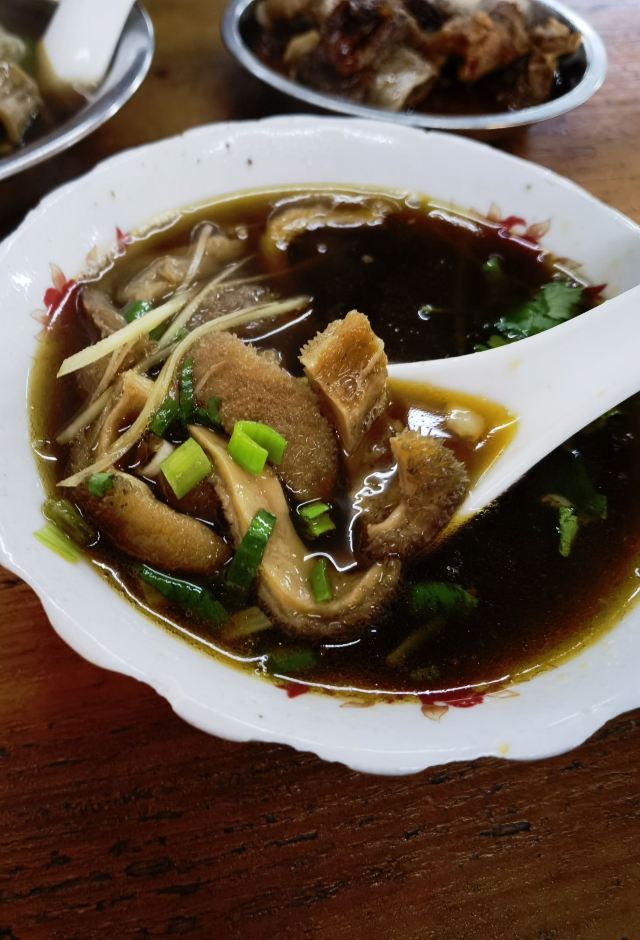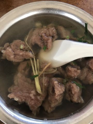 很实惠的一家小吃店,很多人到了吃饭的时间,往牛肉小吃店里一钻,来一碗咸饭,再来一碗牛肉羹,一份牛排,花不了多少钱便可以解决肚子。这家店好吃不贵,煮好的牛肉羹呈淡红色,吃起来很鲜美。