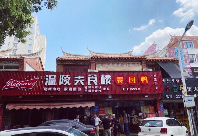 福建之行临走前一定要吃到姜母鸭,所以在赶飞机间隙来了这家,当地朋友推荐说是最早的一家,味道也很正宗,鸭肉很酥嫩,还配有大块的鸭血,醋肉也好吃😋 老板很贴心地知道我们赶时间,连忙用水浴降温,然后抽真空包装。回家煮一煮,也还是那个纯正的味道! 环境: 美食街里面,走个二百米差不多就到地了,很地道的老字号 服务: 会根据你的食量帮你选择菜品。 味道: 我们四人去消费点了2只姜母鸭,一个锅里面鸭肫,一个锅里面鸭血,都很好吃,汤是偏少的,全都融入鸭肉里面了,非常软烂,入口即化的那种~