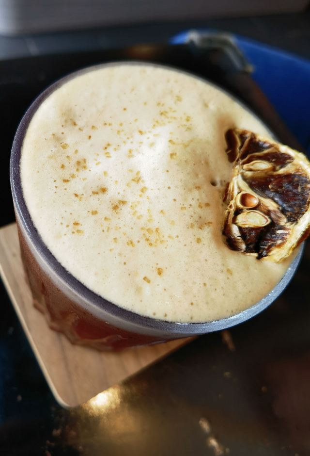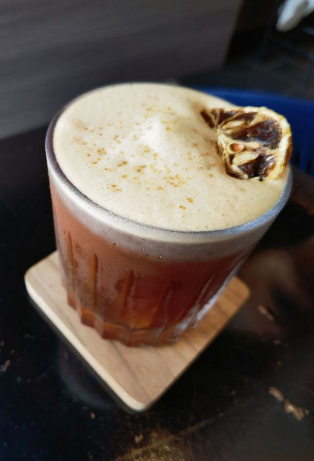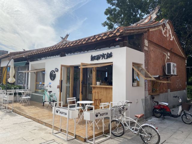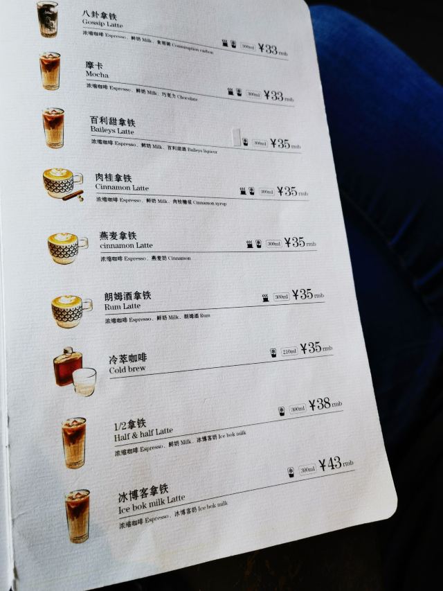 在住的华侨大厦楼下,不临街,稍微有点隐秘,室内空间不大,适合小憩,以及这是在泉州难得的上午营业的咖啡馆啊!泉州人民到底是为什么,要把咖啡当成下午茶来喝呢?!估计老城里没有那种一大早需要打包一杯咖啡赶着上班行色匆匆的社畜白领吧。 冰博克拿铁挺好喝的,就是前两口略苦。还尝试了一个带酒精的,酸酸甜甜,酒味倒是不重。 可能因为工作日,也没有蛋糕吃。