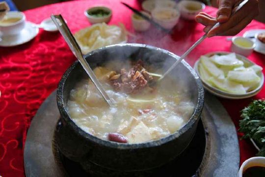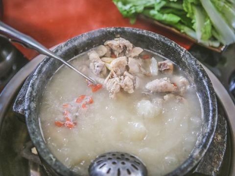 吃了传说中的石锅鸡,很实惠。味道不错。我们两个人,一个石锅鸡吃不完如果有半只就好了,这样就不会浪费了。送的蔬菜和凉菜都不错