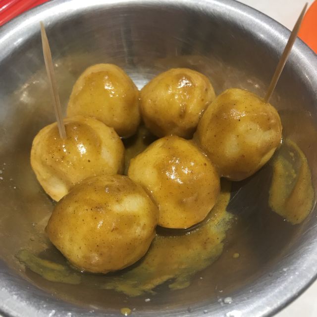 [薄荷]环境: 位置比较狭小,较为拥挤。 [服务铃]服务: 点单模式,正常下单,传菜,人很多,服务较为一般。 「冰岛炒饭」19一份,味道还可以,不是很惊艳。配角有虾仁,青豆等。 「香炸墨鱼丸」「咖喱鱼蛋」这两种各有千秋。都是11元一份。炸的很香,咖喱鱼蛋味道很浓,看个人喜好。 「炸鸡翅」这个不愧是招牌,挺好吃的,9元一个。 可能声名在外,期待有点高了,味道还不错,但也没有惊为天人。小吃种类很多。还有普通饭店的菜品,多样化经营理念。