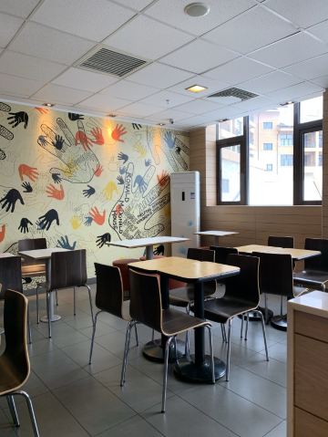 小镇中唯一的一家麦当劳,生意可以说是非常好,很多人都是穿着滑雪装备来吃的,麦当劳的店面比较大,座位也非常的多,环境还算是不错的,服务员比较少,大部分都是自己动手的,麦当劳的东西味道还是可以的,适合滑雪滑累了来这儿垫垫肚子买点吃吃,价格和市区的基本一致,优惠券之类的活动也都能参与