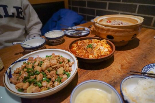 szechuan mountain House🖼 位于纽约曼岛东村的人气川菜店,一度被誉为“纽约最正宗最纯粹的川菜馆”他们家从味道到店面的设计装潢,都是满满浓郁的中国风,连摆盘和造型都是满满的韵味,古色古香,极尽雅致。第一次吃他们家,就被地道的味道深深圈住了,纽约最爱的地道川菜馆迅速认证。他们家无论什么时候,都是满满的排队食客。 🍽 ✨金针酸汤肥牛✨ 一道经典菜品,必点,盛盘造型也可圈可点,古香古色。使用泡椒、泡菜、花椒而制成的汤汁,酸辣可口,舀一勺汤汁,淋在米饭上,根本停不下来,而肥牛也处理的很好,完全不油腻 ✨小米椒爱上小公鸡✨ 每次来他们家都必点的一道菜品,他们家的辣子鸡也是招牌系列,但更喜欢这道的做法,去骨的鸡腿肉与小米椒爆炒而成,鸡肉也吸收了小米椒的香辣味,滋味十足,很是下饭 ✨麻婆豆腐✨ 去到川菜馆,必点麻婆豆腐,因而不能免俗,必须也要来一份,豆腐选用嫩豆腐制作而成,香、浓、辣、滑、嫩,也是一道下饭经典选择