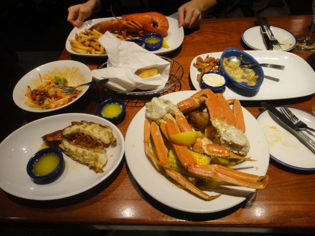 Red Lobster小唐童鞋带我到了Red Lobster去吃龙虾, 来到US算是和龙虾结了梁子。龙虾+雪蟹=129刀。不知不觉都5。30了 结帐去times square。 Times Square自由女神: 这个人没说要5刀的小费, 要不然我都不会照的。