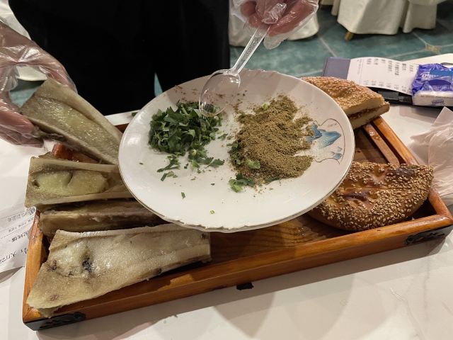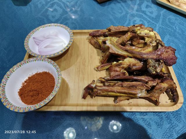误打误撞走错了人家 进门发现居然要排队两小时 果断换人家 但心里种下了一定要再来的种子 后面再来时特意打了店家电话询问需要排队与否 告知不需要排才来的 价格不便宜 每道菜都近乎一百 第一次来没觉得多特别 但有特色 🐂牛骨髓配烤馕 不但有小姐姐特色服务其他地方也没见过这种豪华料理味道油油腻腻配烤馕解腻再配上酸奶也解腻。 🍢馕坑肉就是大一号的羊肉串,烤🉐普普通通 鸡肉捞面很好吃,每次都吃精光。