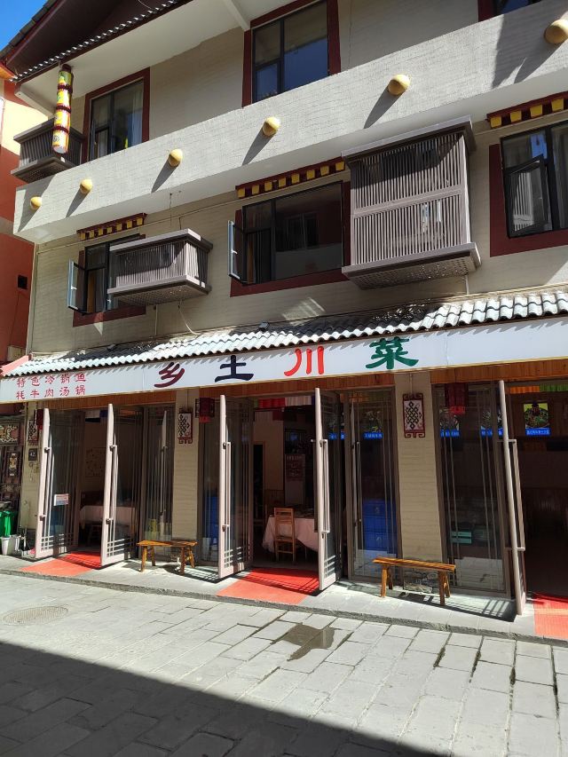 这家餐厅位置很好,离景区步行只要10分钟。餐厅不大,摆放了几张桌子,但是生意非常好。老板娘是四川人,非常热情,会帮你搭配菜肴,不会浪费。 当然一定要点的就是干锅牦牛肉这道菜,配料十足、肉质鲜嫩。核桃花炒腊肉也推荐品尝,腊肉颜色虽不是十分诱人,但入口却清脆爽甜,回味无穷。经典的川菜也相当美味,鱼香肉食、麻婆豆腐也是相当地道。