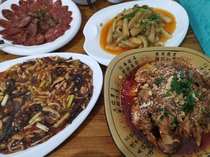 洋芋糍粑,麻婆豆腐,万州烤鱼,青稞饼,回锅肉,鱼香茄子,牦牛肉,冷水鱼,羊肉滋补汤锅,炒野菜,手撕牦牛肉,牦牛肉汤锅,腊肉炒土豆,清蒸冷水鱼,野菜