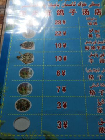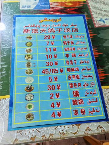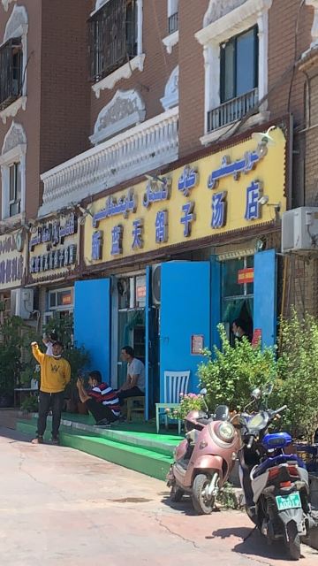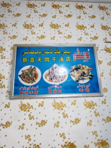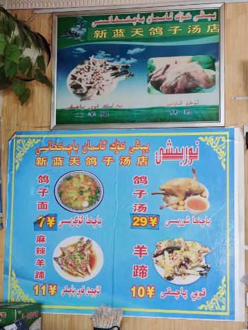 该鸽子汤店在喀什老城的街对面,一条街上有好多鸽子店,唯独这家人气超旺,边上还有一家新天蓝与这家是同一老板,非常好喝的鸽子汤,好吃的鸽子,一点没醒味,汤喝了也不口渴,推荐。