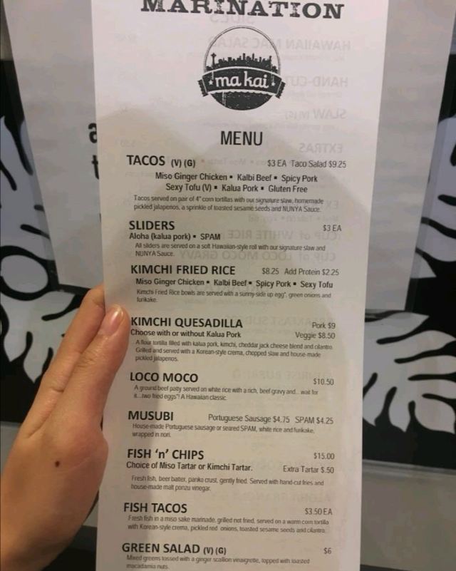 Marination Ma Kai是一个具有夏威夷和韩式风味的小餐馆,也可以说是一个“轮子上的餐厅”。其在Alki Beach上有一个临海的露天就餐台,在这里,你可以边欣赏海景,看着船只,吸辍一口挫冰淇淋,吃点紫菜卷烤肉饭,回味无穷。