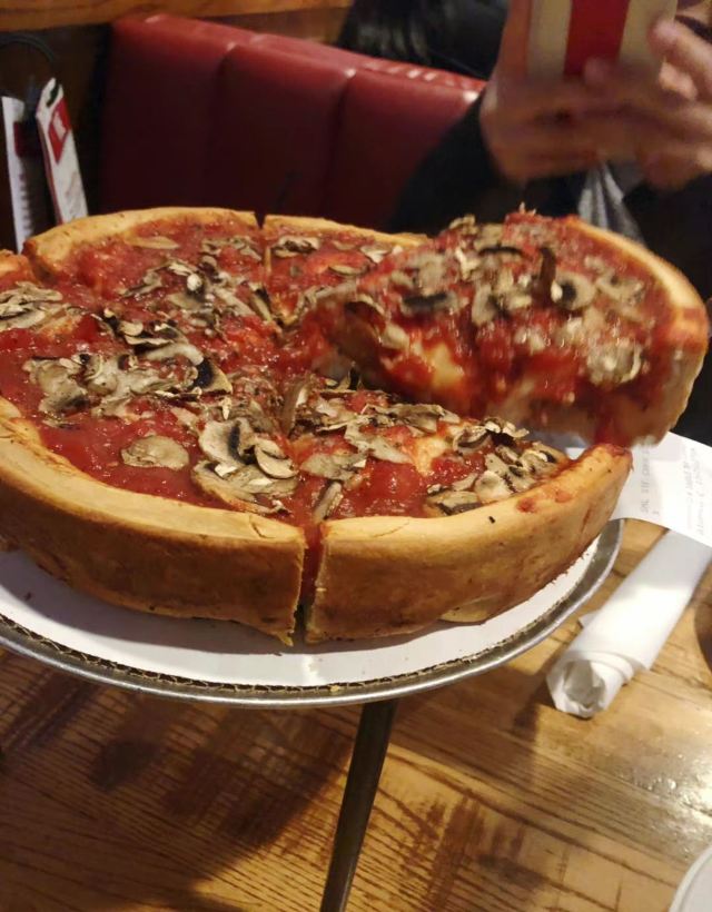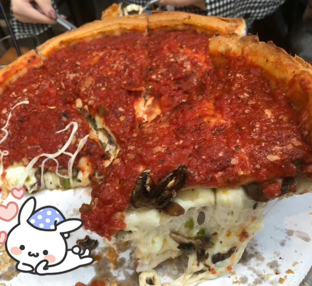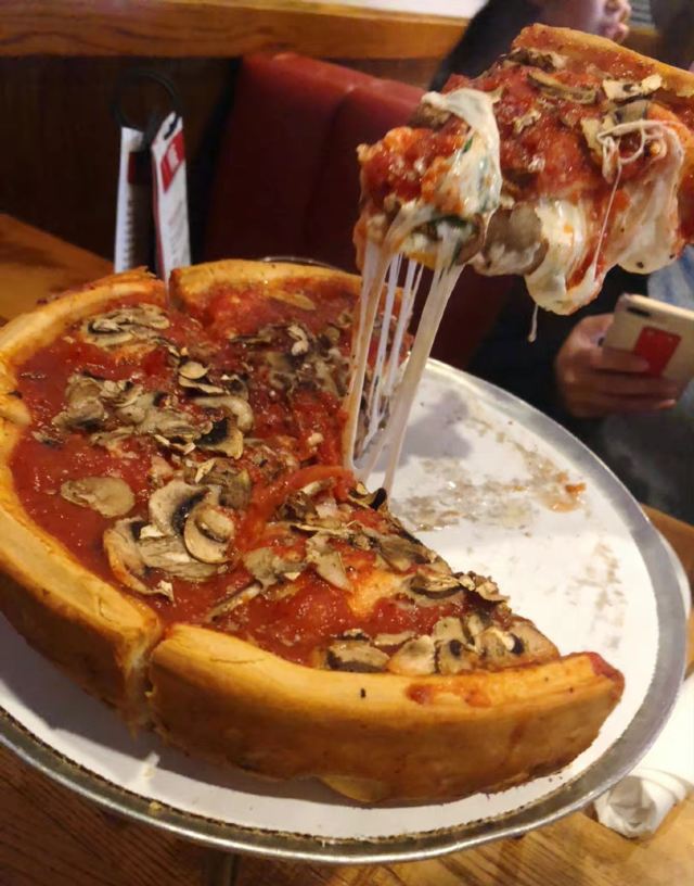 Giordano's很多人都喜爱的芝加哥Giordano’s pizza 吃兴奋了哈哈 好吃我们就多吃点[馋嘴][馋嘴][馋嘴]! 这个deep dish pizza真的挺好吃 饼贼厚 芝士满足度爆棚 馅料足 等它烤好就需要挺久 然后趁热来一块儿 哇[色] 👉 然后不知不觉就差不多饱了
