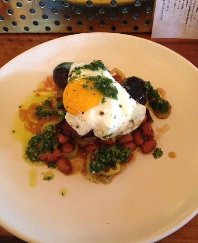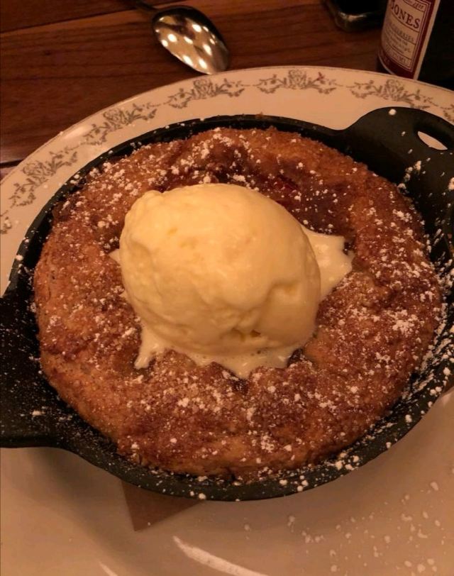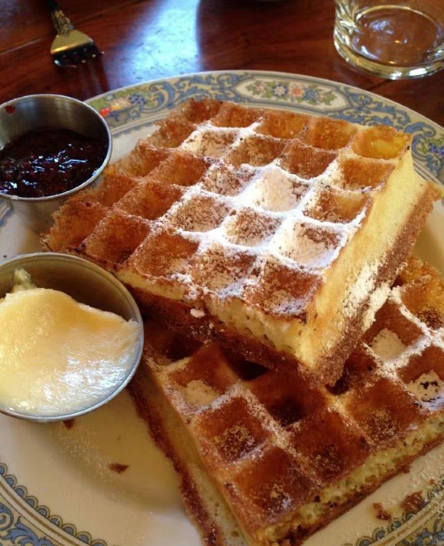 餐厅很大,装饰很酷,就餐体验很有趣。直通到底的长排桌,大家都坐在一起。整个餐厅气氛很好,四周都是谈笑声,我们也在其中。服务周到,食物也非常好吃。我的flat bread上是whitefish,他的蟹肉炒蛋也极香,waffle特别酥香!