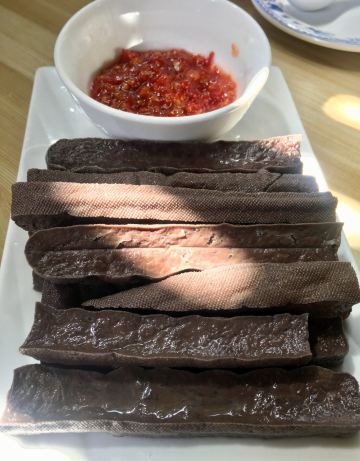 题外之话河北涞源@黑豆花鲜羊馆 若非亲往,我或许想象不出,在偏远的涞源县城,竟然藏着一家美味的特色餐厅:黑豆花鲜羊馆。这家餐馆藏在城乡结合部的一个简陋农家四合院里,尽管位置偏僻不临街,饭点时分,门外还是停满了慕名前来寻美食的食客,可见酒香不怕巷子深。 烟火缭绕的小院,东西两侧为厨房,正房、南房和院子里挤满了就餐的人们。天一擦黑我们到店时,正赶上一大锅羊肉、羊棒骨热气腾腾地摆在人们面前,让人很有食欲。手扒羊肉鲜嫩肥美,不膻不腻,葱香豆腐嫩滑鲜香,黑豆干很硬厚,蘸上略带甜味的辣酱,越嚼越香……据说来源的豆腐,是酸浆豆腐,而不是卤水点豆腐,所以风味独特,和别处大不相同。 因为好评如潮,所以前来就餐的外地食客,多是慕名而来,跟着导航倒也不难找。一个小县城,有一家美味无敌的饭馆,有一个舒心入住的宾馆旅舍,有山清水秀的风景,便让人觉着不虚此行了。