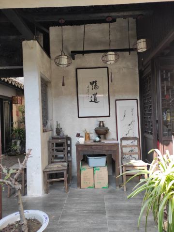 这家在浏河古镇,沿着河西街走到尽头,就能看到这家老浏河餐馆。不过一开始我并没有意识到这是饭馆,还以为是展示厅,因为实在没有烟火气,更没有用餐者,连招呼的人都没有。环境倒是古色古香,那个庭院挺漂亮的。只看到有包装好的爊鸭卖(119元一只),还有些当天做的糕点。
