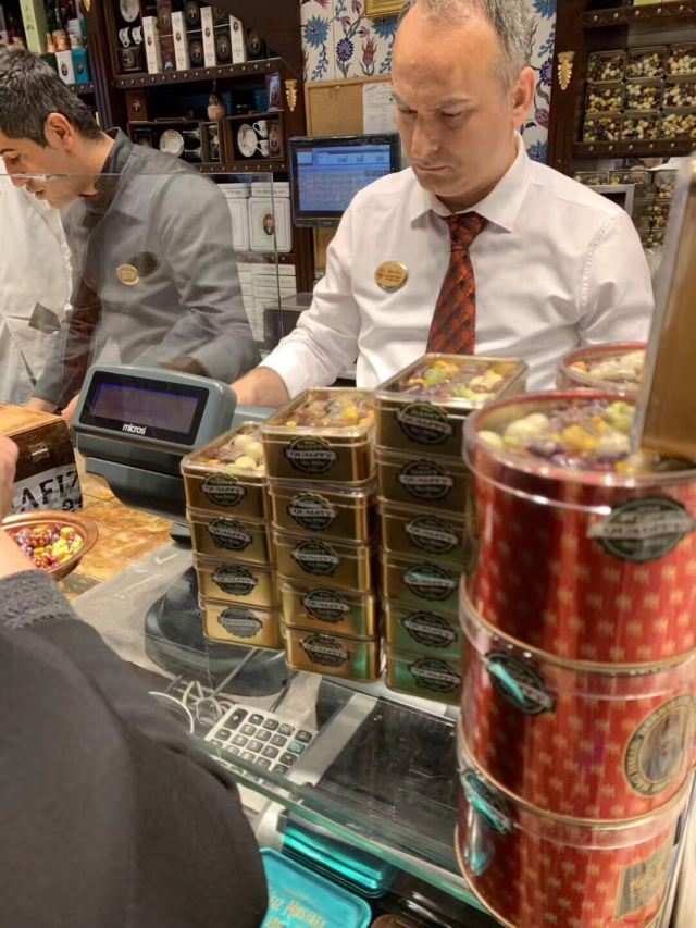 Hafiz Mustafa 1864, Sirkeci土耳其的百年老店,是当地一个甜品和巧克力的招牌,味道对于我们喜欢的味觉来说有点太甜了,但是在当地是很受欢迎,而且有很多人去买了当手信。巧克力里面比较受欢迎的有一款五彩缤纷的小石头,里面包裹着各种果仁,吃下去每一颗都是一种惊喜。