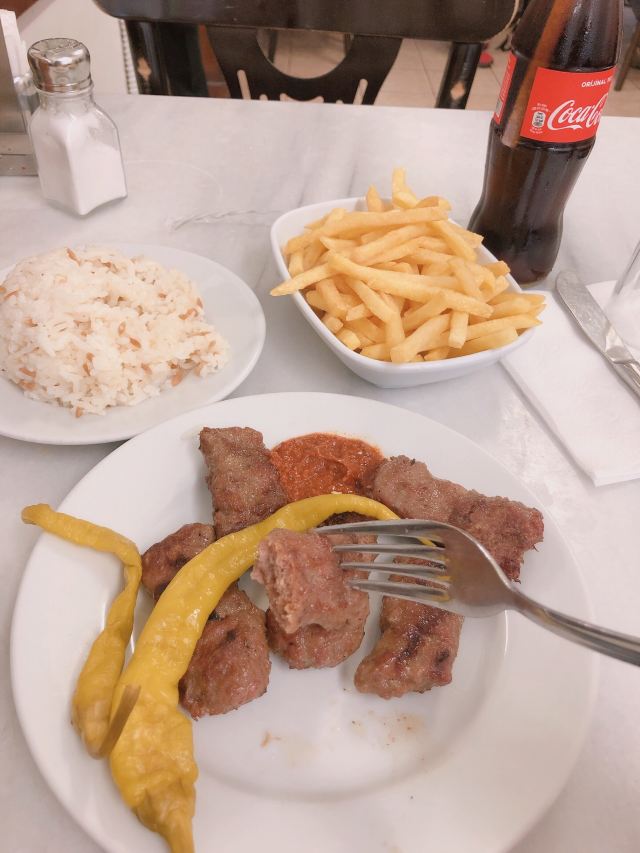 YoYo_0U7W5W4X著名的肉丸店,很好找,在Tram经过的主路上,离Sultanahmet车站不远。进去一看菜单,主食只有肉丸和羊肉两种,炭火烤的,一人一份再加沙拉和酸奶,大概三四十里拉。