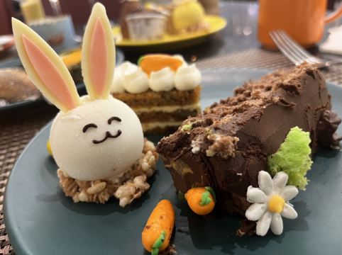 对于一个超级喜欢甜品的人来说,这个复活节buffet超赞!甜品种类繁多。可能我很晚才到,八点钟才到达,很多食材都落架了,羊架没吃到,北京填鸭沽清,这点也得注意了,香港的自助餐一般都是吃到尾声的。煎鹅肝的帅哥超级大好人,可能已经不用排队,我就问一下可以一个人拿两份吗?他说无问题👍……煎牛排的煎得太熟了,太干吃不了😭……整体感觉不错,员工质数值得加许,赞👍