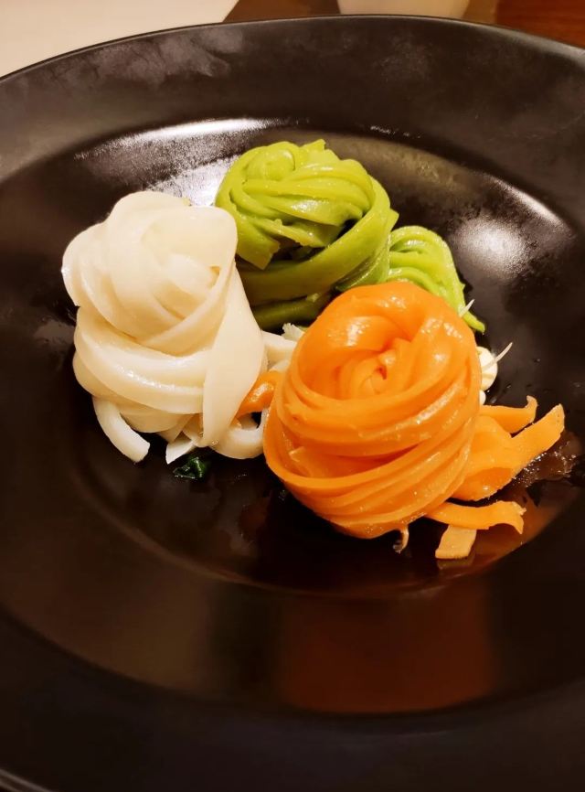 高圆圆光顾过的西北菜餐馆,装修以黑、白为主基调,复古与现代的优质结合,主打菜大秦烤羊排用的是肉质鲜嫩的羊羔肉,酥软入味连骨头能啃,三色凉皮也是必点,菠菜、胡萝卜调色,麻酱不浓不腻,面皮厚实有嚼劲。