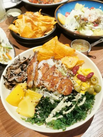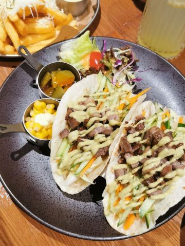 🎀朋友过生日选择在这家必吃榜的餐厅,氛围感好强呀😘 [薄荷]环境: 环境真的没的说,感觉是融合了大自然的元素,带有一丝的工业简约风。好喜欢。 |吞拿鱼蟹籽八爪鱼炒饭^这款拌饭巨好吃 获得一致好评。 |墨西哥芥末牛油果酱牛肉Taco^好大份量的TACO第一次吃,得分着吃啦,😊😊 |精选牛板腱配薯菜^牛肉选的七分熟,很嫩,玫瑰椒盐配着吃,真的很绝。每道菜都很棒,没有踩雷啦。 [服务铃]服务:服务很好,全程没有不耐心的感觉,颜值餐厅颜值员工。