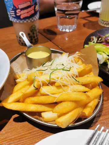 芝士地瓜薯条配英伦酱,吞拿鱼蟹籽八爪鱼炒饭,鸡软骨,炸薯条,精选厚切牛板腱扒,薄趣蜜羽(鸡翅),精选牛板腱配薯菜,蟹籽小沙粒,墨西哥芥末牛油果酱牛肉Taco,椰香蘑菇忌廉汤