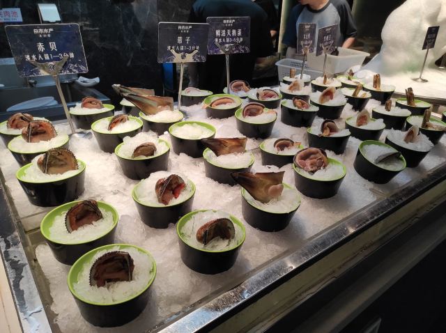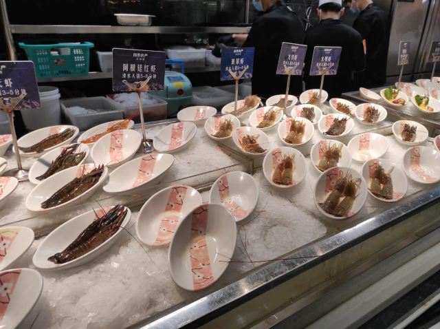 舟巿水产,是一家以海鲜火锅为主题的自助餐。可以自已捞海鲜,也有冰镇的海鲜,用小器皿独立盛载,立便拿取。另外有刺身寿司,前菜,汤、熟食、水果、甜品糖水等多不胜数。 场地很大,建议先在餐厅取餐区走一圈,再细细挑选。