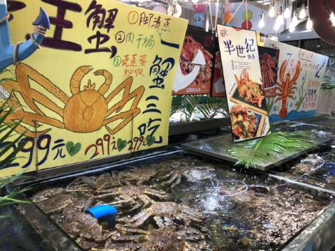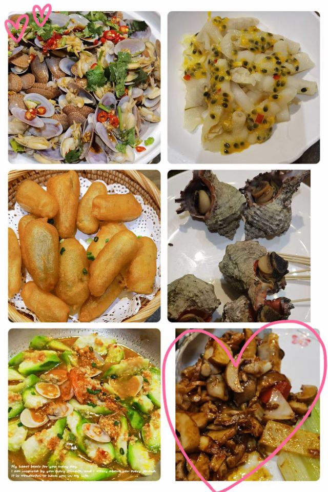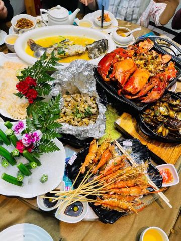 椒盐濑尿虾,百香果蒸鲍鱼,蒜蓉烤生蚝,三叔烤大罗虾,清蒸花螺,蒜酱烤波龙,小鲍鱼,三叔烤罗氏虾,九肚鱼,波士顿龙虾王,避风塘炒蟹,海胆炒饭,扇贝,渤海鲍鱼