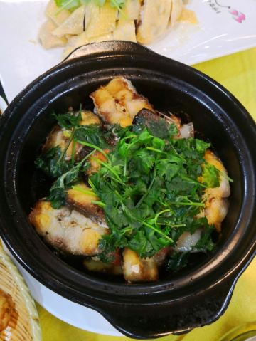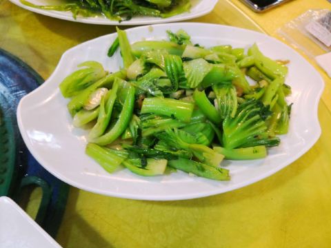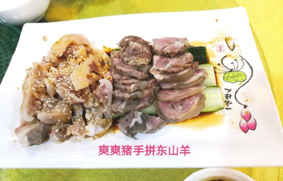 🚗停车:饭店门口没有停车的位置,对面的商店还在建设中,要么就停在路边,要么往前开100米停在其他院内。 💦服务:坐下看菜谱下单,工作人员态度积极主动,端茶倒水,特别是下单后,上菜速度挺快,一会儿,一桌子的菜就都上全啦👍 💦环境:有包间,也有一个大厅,饭点时间,都坐的满满的人,可见大家对这个餐厅的认可。 白切湛江阉鸡^特色菜,点了半只,一大盘,鸡味浓郁,就是有点偏柴,牙口不好的人,吃起来有点费劲。 湛江爽爽猪手^白切东山羊^是一个凉菜拼盘,沾着酱汁,酱香鲜美 煎焗芒鱼^这里能吃到家乡的味道,这道菜做的很棒,香鲜咸。