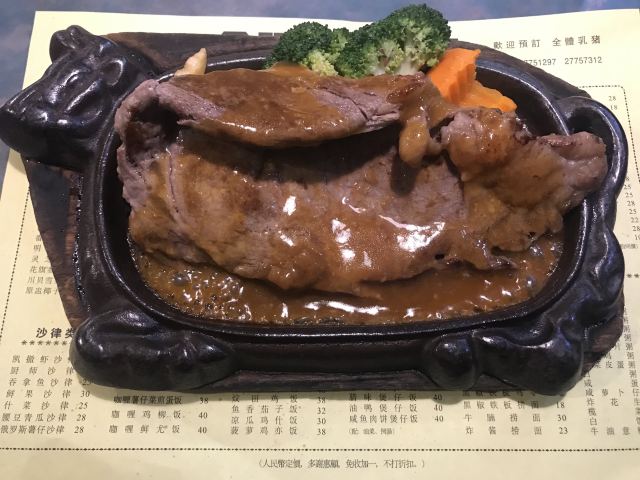 十几二十年的老店了 无论装修还是桌椅摆设都看得出历史的痕迹 但并不妨碍金晖成为个人钟爱的餐厅之一 虽叫牛扒之家 但实话实说 这家的牛扒只能勉强算差强人意 但是这里的炒菜 碟头饭和西式小吃却能给人惊喜 特别指出 这里提供在全深圳范围几乎绝迹的本地啤酒金威啤酒 冲这点就值得点赞 当然除了情怀 当作一家茶餐厅来评价 它也绝对具备竞争力 PS 门口有充足车位 营业至晚十点