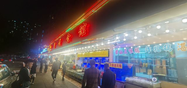 来深圳出差,第二天要走了,临走前一天当地同事带我们去深圳当地很出名的海鲜食街吃饭,整个一条小路都是大大小小的海鲜排挡,气派很大,我们去的是家叫宝发食馆的,也是当地同事最常去的一家,据说排场已经比疫情前小了许多,不过生意现在还是不错,看来也都是回头的老食客了,点了海鲜为主的一桌菜,口味也不错,加上十几瓶啤酒,人均也就200不到,也算是性价比很高了。